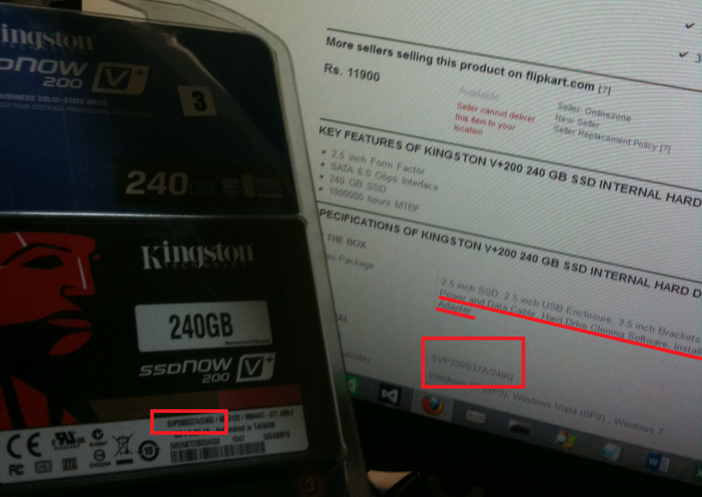 I got the Kingston V+200 240 GB SSD Internal Hard Drive (SVP200S37A/240G) from Flipkart for Rs.11,542/-. Snagged an extra 10% discount during one of their Monday Sale events.