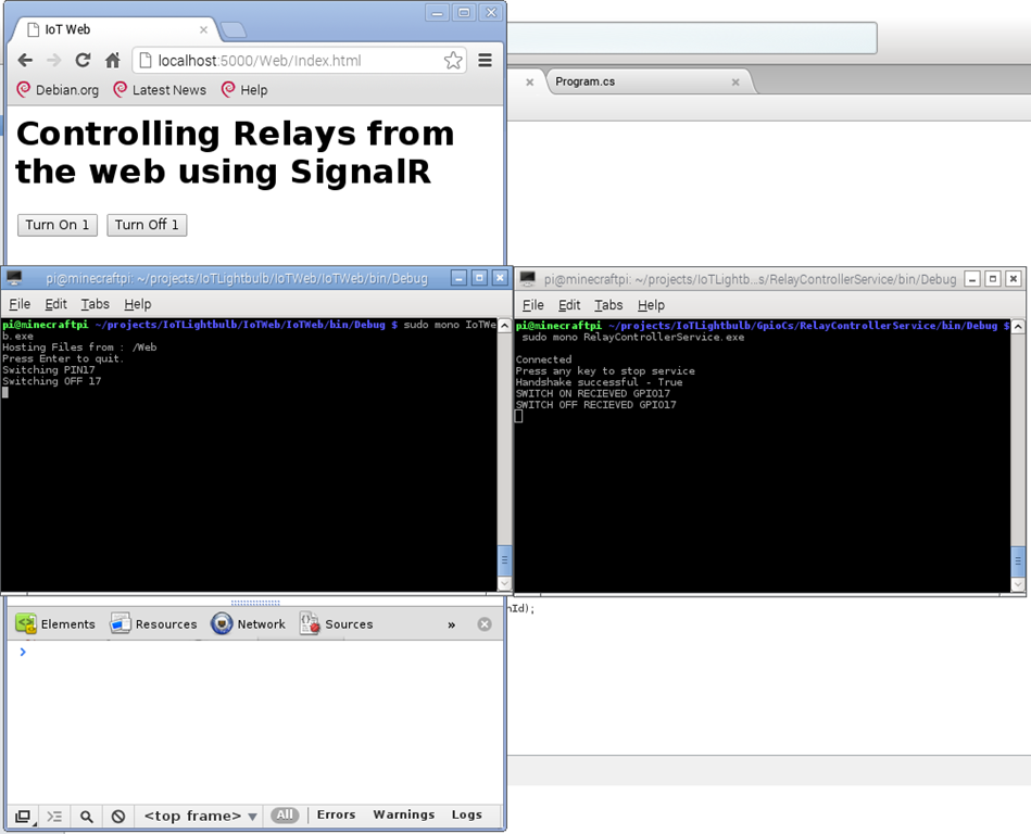 pi@raspberry ~/projects/IoTLightbulb/IoTWeb/bin/Debug $ sudo mono IoTWeb.exe