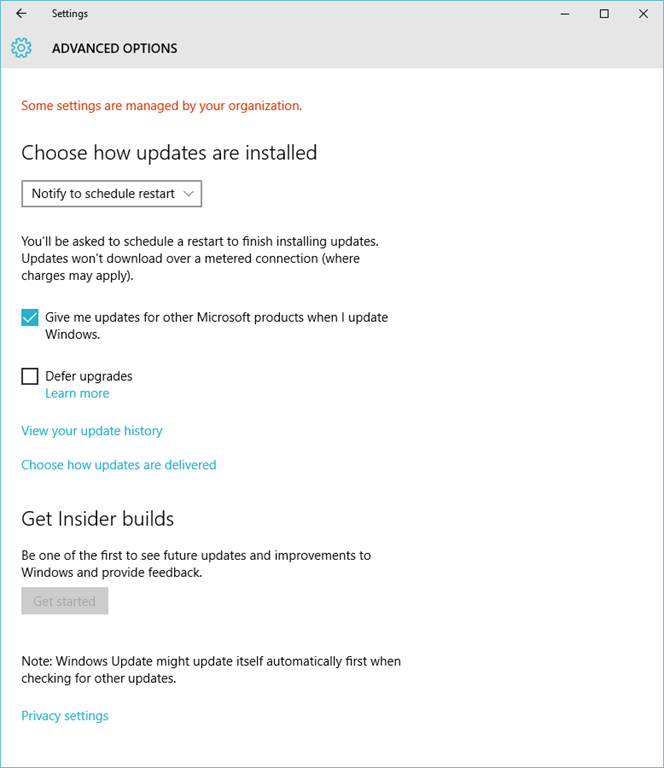 Don't be confused by the 'Some settings are managed by your organization' message. I started getting that after I turned off a few more settings under privacy, I don't quite remember the sequence of events after which I started getting the message. Yes it's a dumb message that doesn't make sense on a computer that is sitting at home.